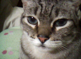 Fue llamado Midori por su pelaje medio verde, Misifuz, Mini-Me, Misifuzky, y muchos otros nombres pero ante todo fue mi gatijo. Estuvo con nosotros en momentos muy difíciles y en su último año, sobre todo acompañó a mi papá en su enfermedad y a su vez él lo acompañó en la suya. Hace tres meses limpiando sus orejitas comenzó a sangrar, herida que resultó ser un tumor que creció, se extirpó, volvió a crecer, se infectó... No es mi intención recordar esta parte de la historia de mi gato, porque él nos dio mucho más que esto... Nos enseñó que un regaño no surte efecto si no se hace con amor, nos enseñó tolerancia y digan lo que digan de los gatos, fidelidad, pero un tipo distinto en el que él no es un animalito y nosotros sus amos, sino una relación más cercana en al que aunque la gran mayoría de las veces no nos hacía mucho caso, jamás pusimos en duda su amor por nosotros. Con cada uno fue una relación distinta, con mi mamá, su compañero, su muñeco; con mi papá un amor indescriptible, con mi hermano un ronroneo con sólo verlo, conmigo mil y un juegos, risas, araños y mordidas pero aunque nos sacábamos de quicio mutuamente, siempre estuvimos unidos desde la primera vez que nos vimos y dormimos abrazados abajo de las cobijas cuando hacía frío.